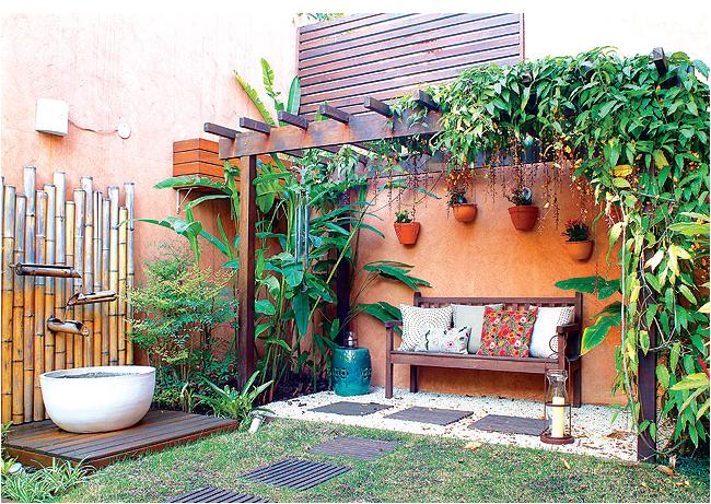 Aqui, além de um detalhe decorativo, o painel de bambu serve para dar privacidade para quem usa o spa da casa