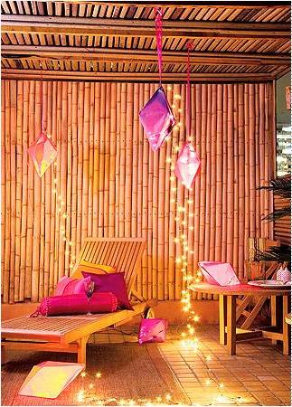 O bambu não se limita apenas à área externa. Aqui, exemplos de como usá-lo dentro e fora de casa
