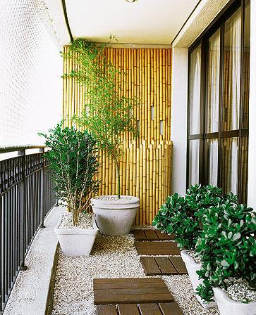 A varanda foi fechada com bambu para dar mais privacidade aos moradores.